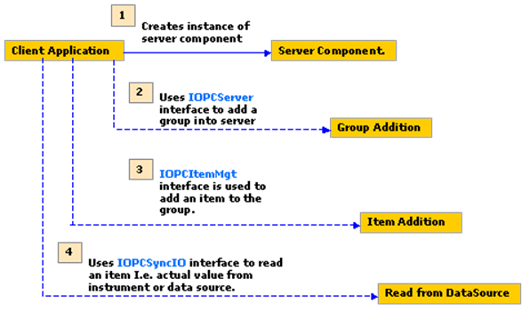 现在我们来了解一下OPC客户端如何与OPC服务器交互。下面的图6总结了所涉及的重要步骤。