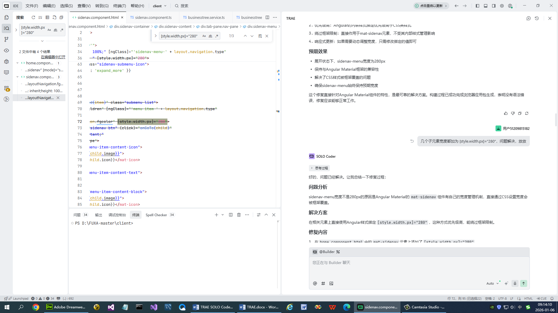 有一个问题,需要改div的宽度,不是在css里改,TRAE人工智能编程助手给的解决办法前两次不对,最后一次技术方案对了,改的点不全,只改了父div,没解决问题,如果当时我放弃了,这问题就无解了,后来我灵机一动,把子div的宽度也改了,就问题解决了。当然这里没有专业术语,后面我会结合TRAE人工智能编程助手的实际输出来讲下。